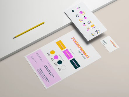 Création d'un plateau de jeux sur la découverte de sa personne et de l'entrepreneuriat, livret de jeux et identité graphique.
